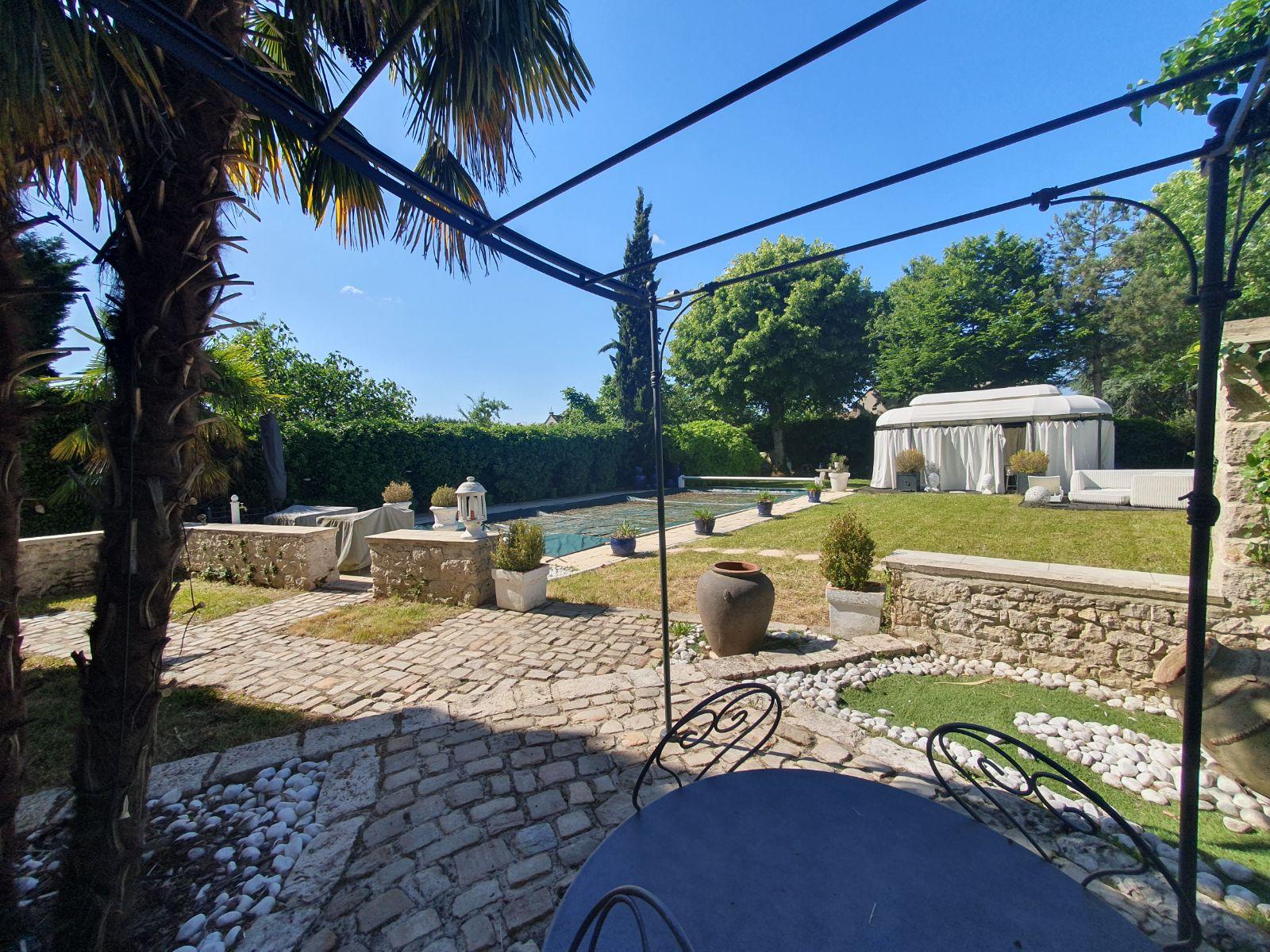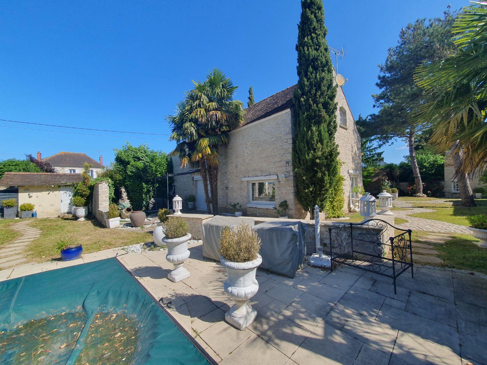 Véritable havre de paix qui vous est proposé à la vente, cette maison a été entièrement rénovée avec goût et des matériaux de qualité. Vous serez séduit dès votre entrée dans la propriété par un environnement apaisant, rappelant le charme des villas de vacances du sud de la France. Cette maison offre une vaste entrée donnant sur une spacieuse pièce de vie accueillant un espace salle à manger, une cuisine ouverte, un salon agrémenté d’une cheminée. Le rez-de-chaussée est complété par un espace nuit avec salle de bains et un WC indépendant. L’aspect atypique de l’étage apporte du caractère à la vue sur la pièce de vie, notamment grâce à sa hauteur sous plafond et à ses différents paliers offrant chacun une fonctionnalité : salon de lecture, trois chambres supplémentaires, salle d’eau avec WC, buanderie et une mezzanine transformée en bureau. Côté extérieur, le charme opère avec un jardin paysager et cinq terrasses, chacune avec une exposition différente, permettant de profiter de chaque moment de la journée. Le terrain est équipé d’une piscine enterrée, dans un cadre agréable pour se détendre. Trois dépendances viennent compléter la propriété et laissent place à l’imagination pour de futurs aménagements. Cette demeure représente un investissement en résidence secondaire, à à peine 1h15 au sud de Paris. N’hésitez pas à demander un rendez-vous de visite et à venir découvrir ce lieu singulier.